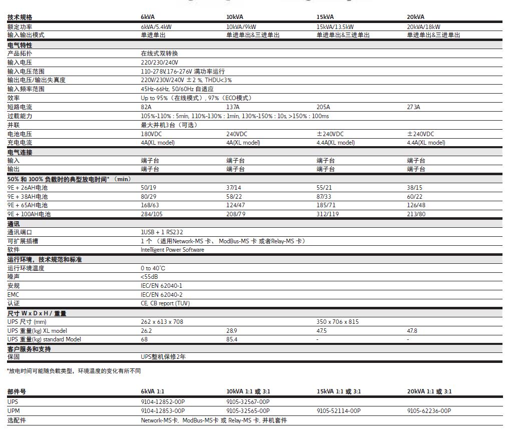 - 10-20 kVA 機型具備3:1和1:1可調功能